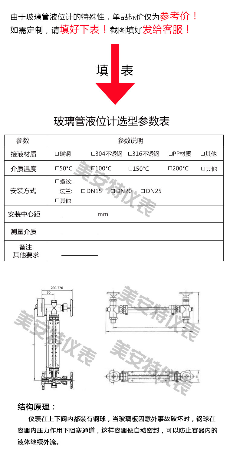 玻璃管液位计规格可按照客户实际情况定制,支持:玻璃管液位计非标定制